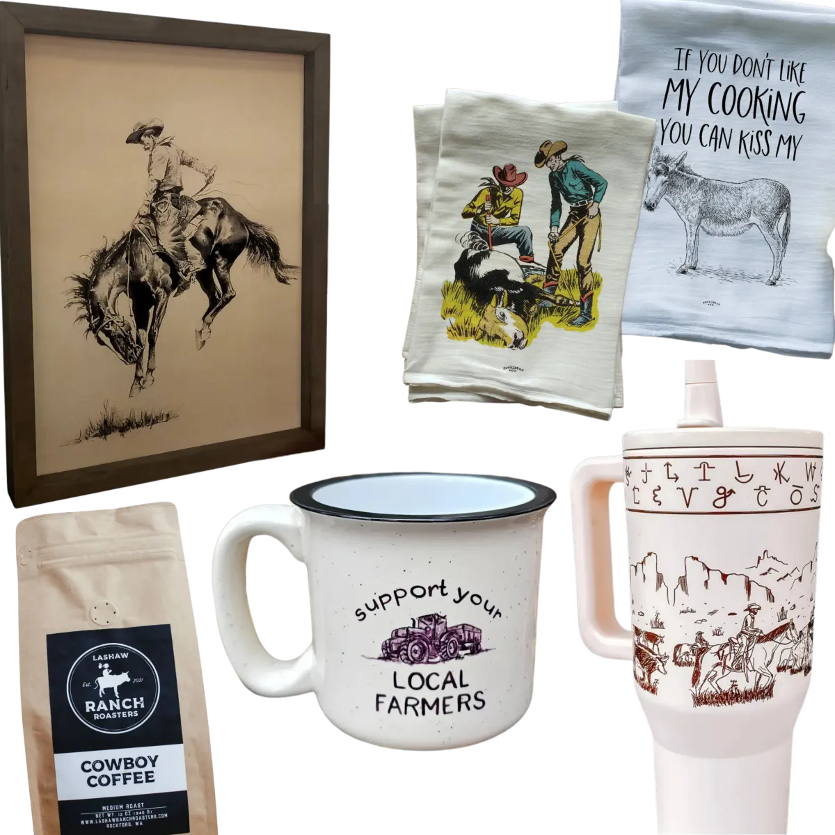 We keep a small selection of clothing, gifts, and home goods that fit everyday ranch life.
